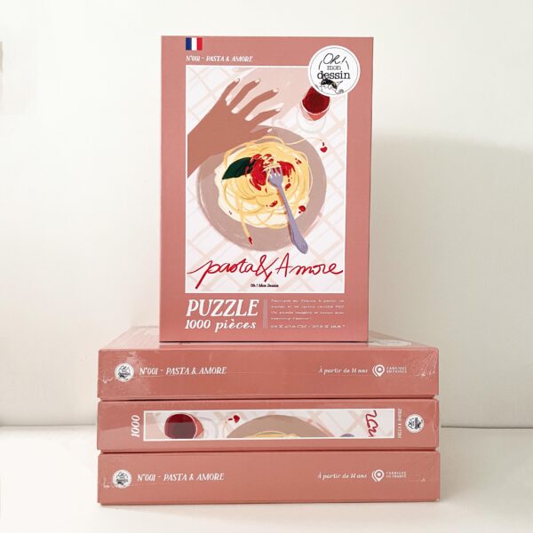 Plongez dans une ambiance méditerranéenne avec le puzzle « Pasta & Amore » ! Ce puzzle de 1000 pièces représente une illustration pleine de charme d’une assiette de pâtes et d’un verre de vin, parfaite pour les amateurs de gastronomie italienne et de moments chaleureux. Avec ses couleurs douces et son design élégant, il apporte une touche de douceur et de gourmandise à vos moments de détente.