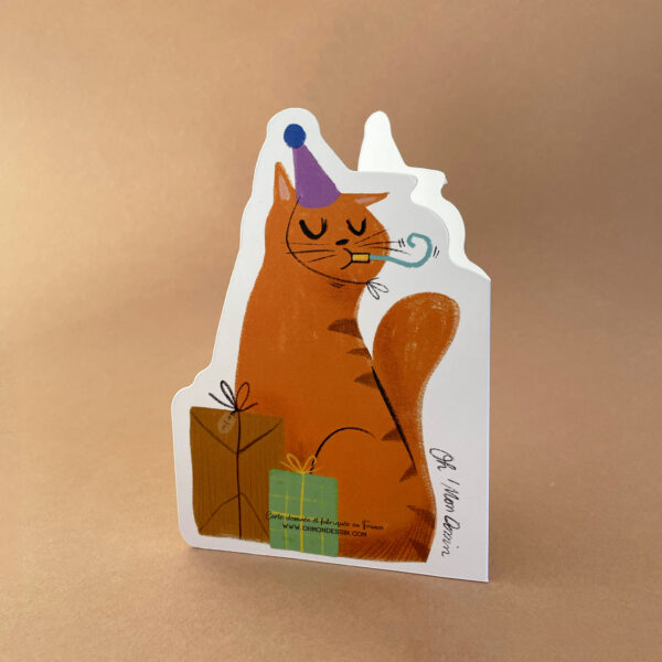 $9.00Cette carte découpée illustrée d’un chat roux malicieux célèbre les anniversaires avec tendresse et une pointe d’espièglerie.
