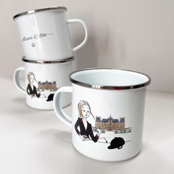$24.00Plongez dans l’élégance et l’atmosphère unique de Maisons-Laffitte avec ce superbe mug émaillé. Son design délicatement illustré met en scène une cavalière, profitant d’un moment gourmand avec un délicieux Paris-Brest et en arrière-plan, le Château de Maisons.
