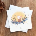 Une illustration toute douce représentant un oiseau posé sur sa jolie couronne de pin. Illustration aux tons doux pour se souhaiter de belles fêtes ou une belle année.