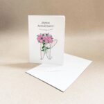 L’incontournable carte d’anniversaire « Le chat et les pivoines ».