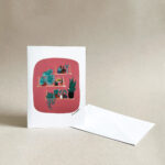 Cette carte double est fabriquée artisanalement et vendue avec son enveloppe.