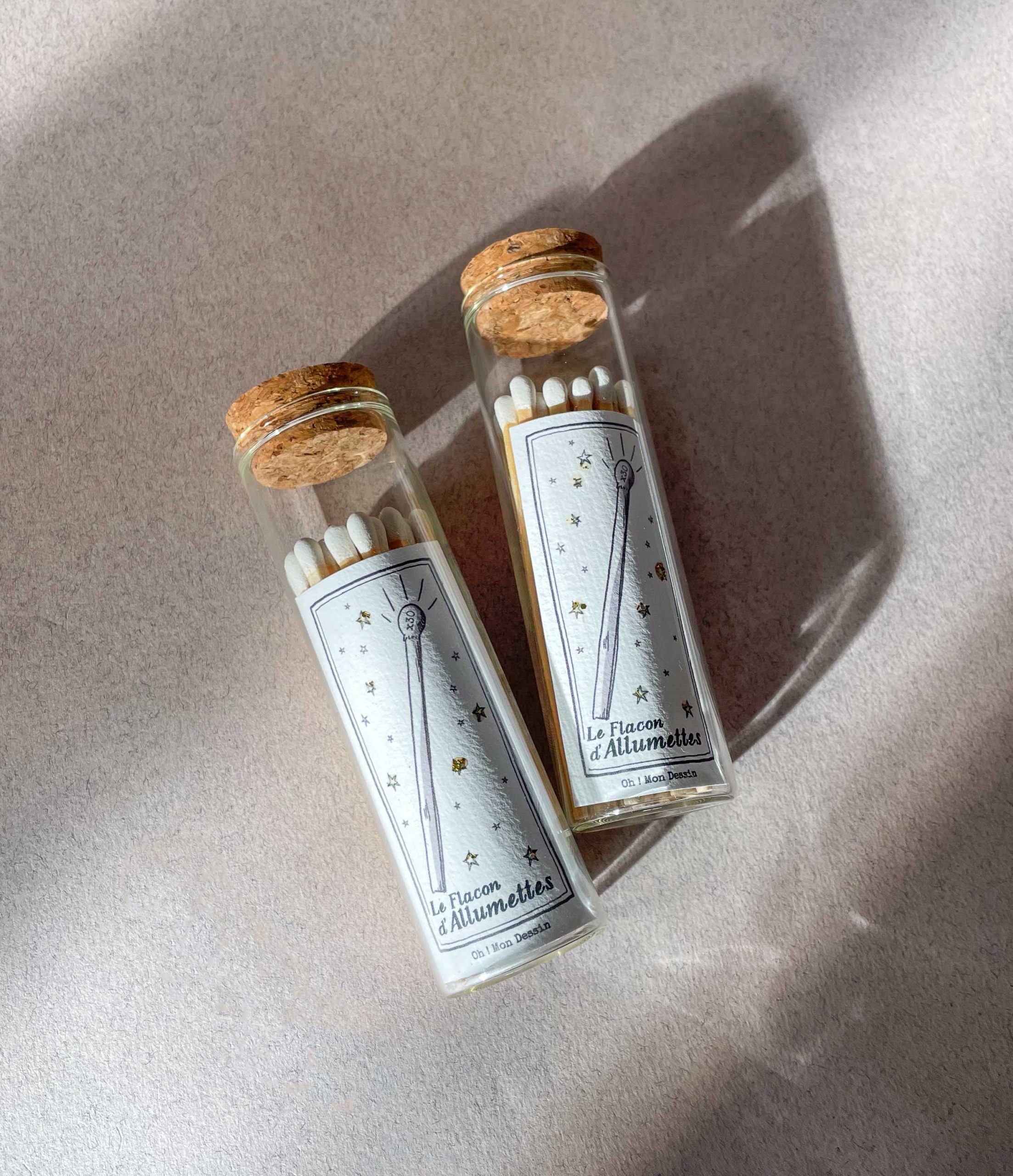 Découvrez notre flacon d’allumettes, un petit objet du quotidien qui se transforme en accessoire décoratif raffiné. Présentées dans une fiole en verre avec un bouchon en liège, ces 30 allumettes sont à la fois pratiques et élégantes.