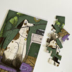 « Le Chien Joueur » un puzzle A5 de 24 pièces au design unique et poétique, entièrement fabriqué en France.